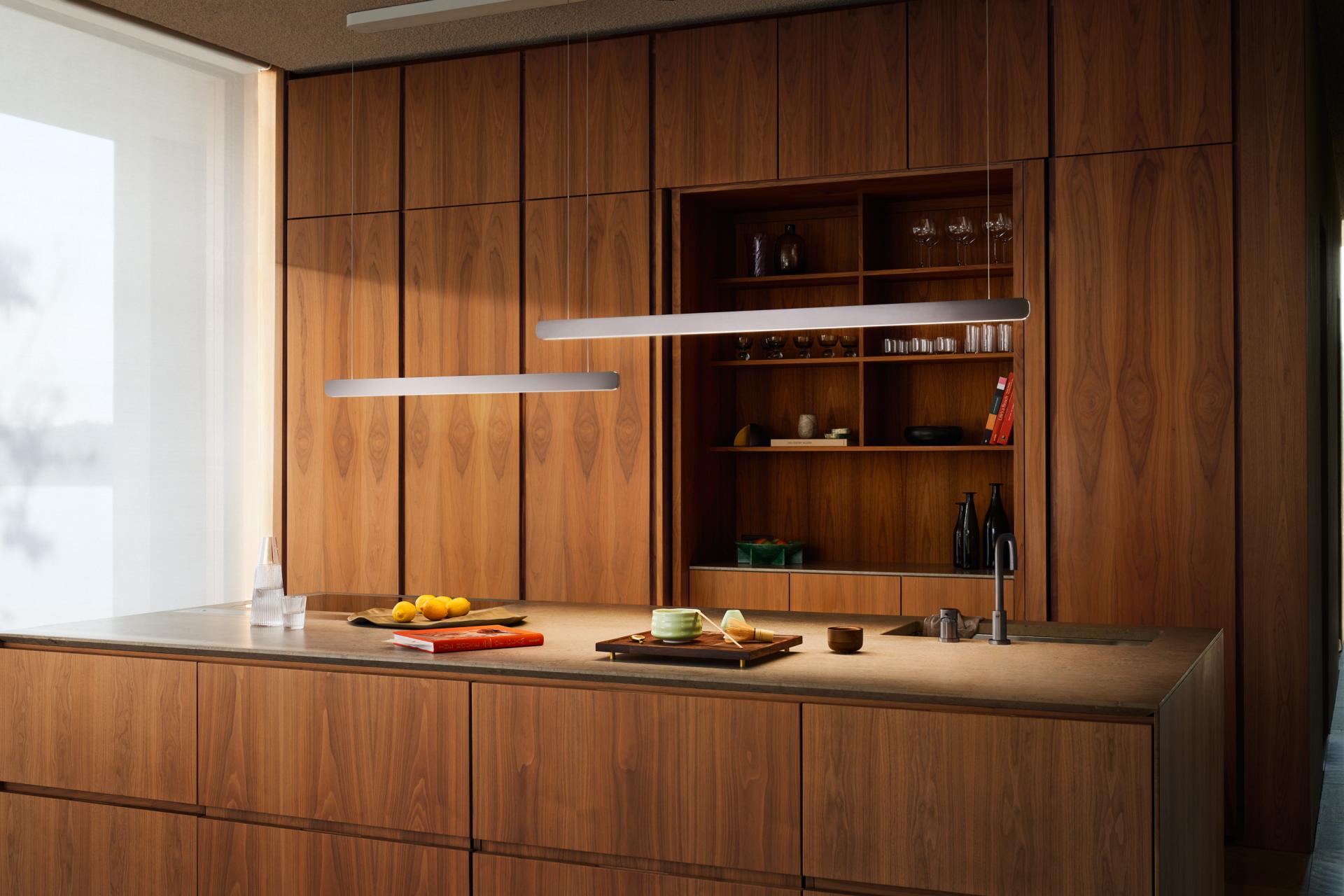 Mito volo reinvents the suspended luminaire. Radically linear, elaborated to the smallest detail, continuous height adjustment on request, and powerful uplighting and downlighting that can be controlled intuitively with gestures or via app: thanks to these brilliant features, Mito volo creates the perfect light for every situation, allowing you to enjoy the ambience, the room and the moment to the fullest.